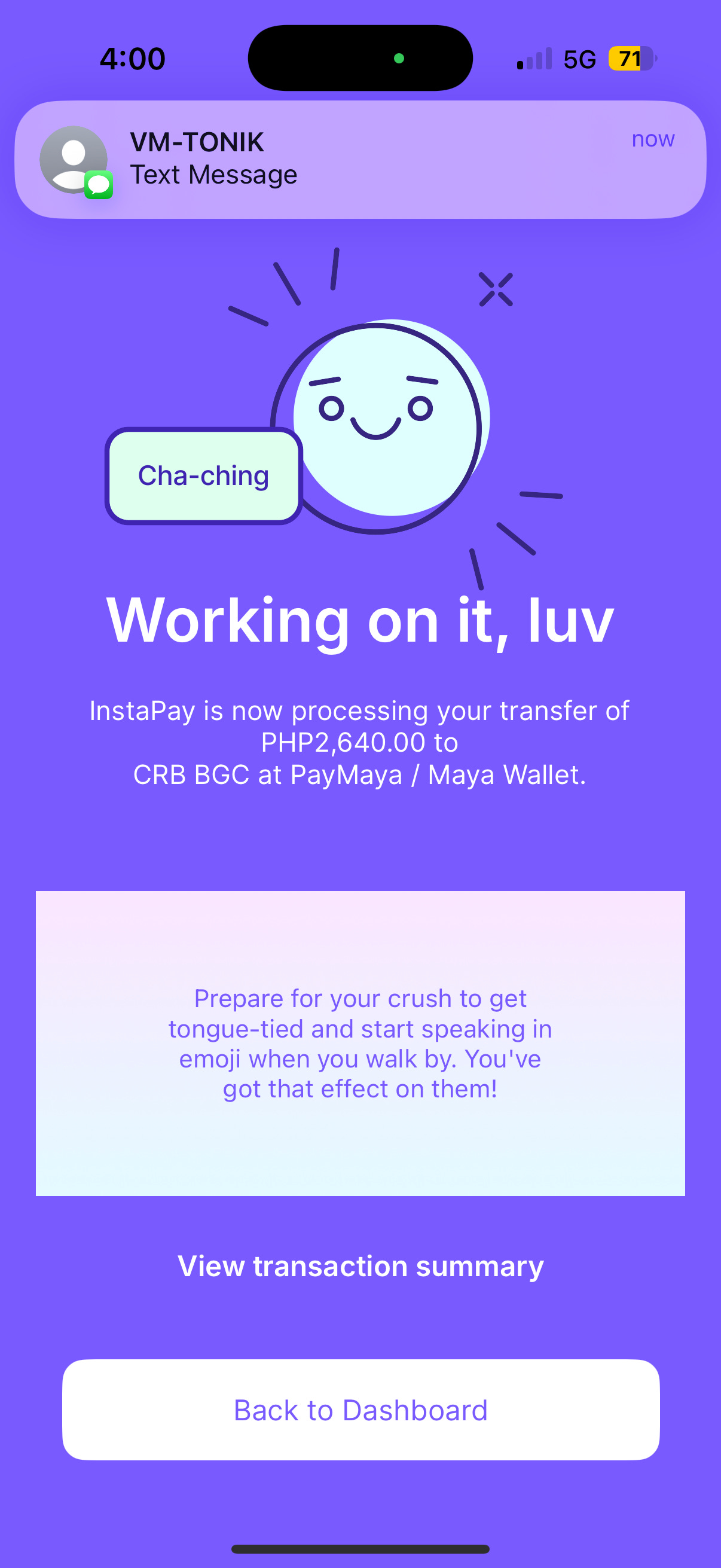 A personal milestone (“You’ve just sent ₱10,000 to friends and family this year!”)