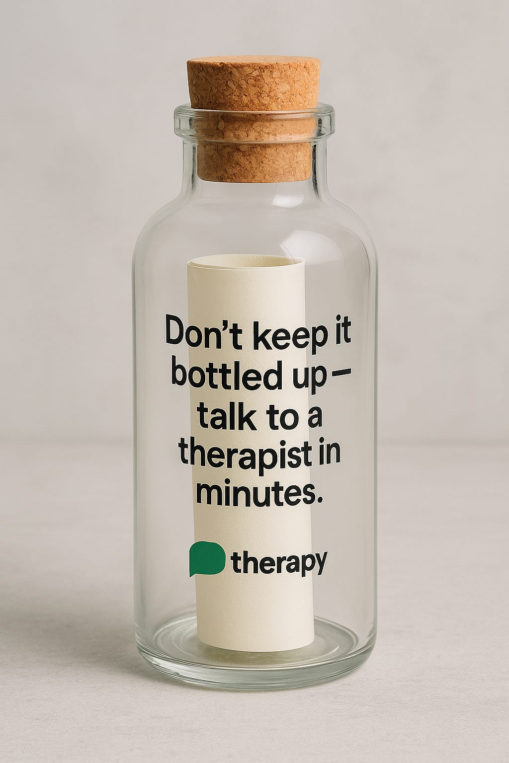If you are a wellness app, bring the metaphor “Bottled-up emotions” to life by sending branded glass bottles with a message inside.