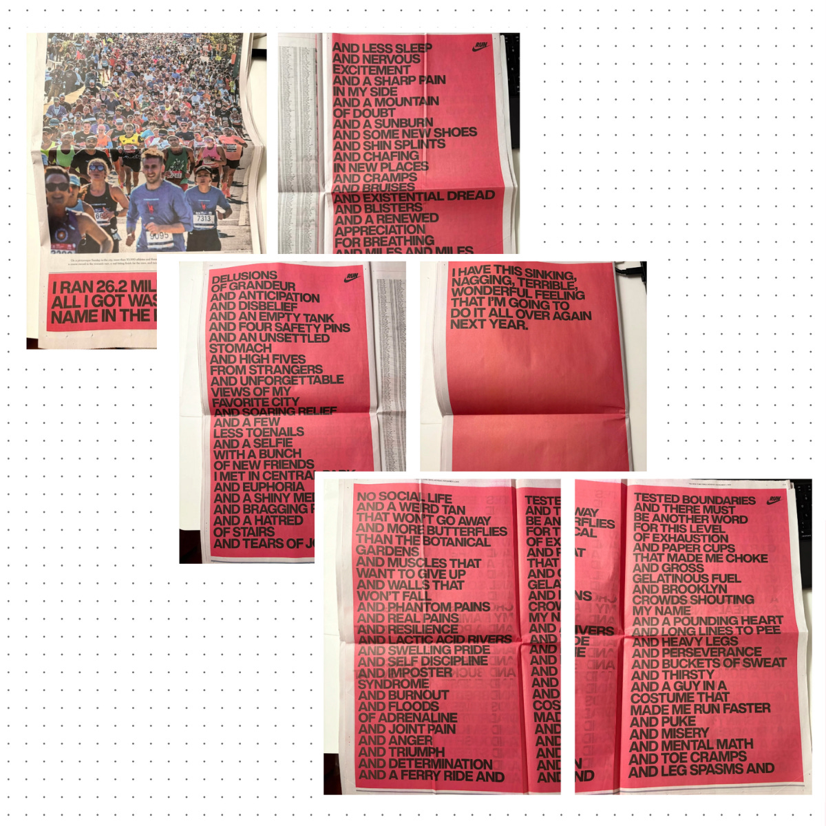 Yet, Iām still a huge admirer of Nikeās marketing. Their six-page love letter to runners after the NYC Marathon was stunning. It genuinely moved me.