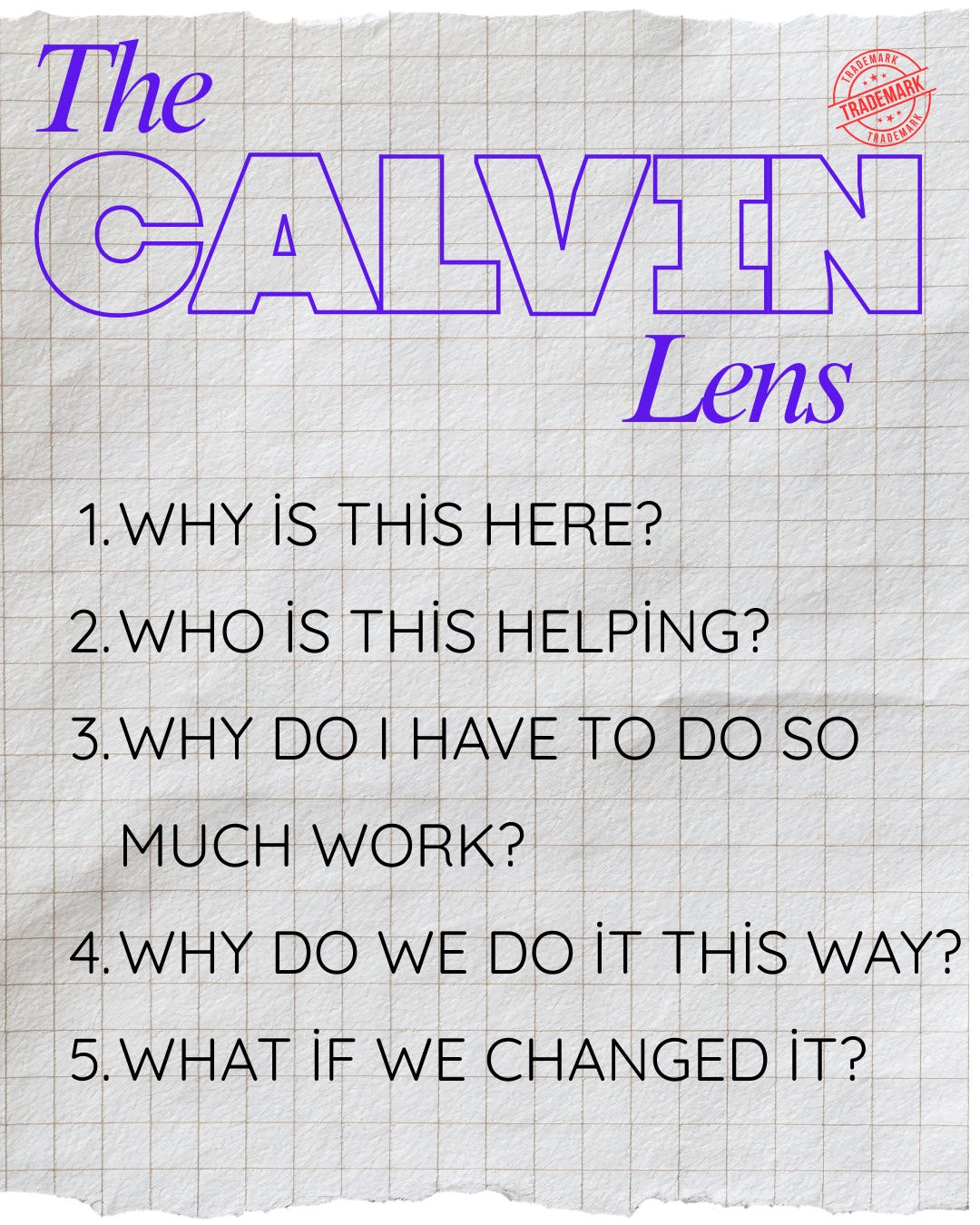 The Calvin Lens is a way to inspect a product through this equation: